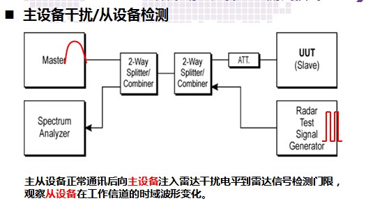 在雷達(dá)工作頻率高子帶區(qū)(5,470-5,725MHz),從設(shè)備應(yīng)滿足(5,250-5,350MHz)的最低輸出功率要求(小于17dBm)。