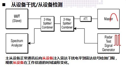 在雷達(dá)工作頻率高子帶區(qū)(5,470-5,725MHz),不帶雷達(dá)干擾信號檢測功能的從設(shè)備應(yīng)滿足(5,150-5,350MHz)輸出功率要求。