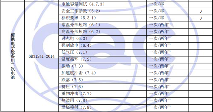 信息技術(shù)設(shè)備(含電信終端設(shè)備)、音視頻電子設(shè)備用鋰離子電池組 | GB4943.1-2011 GB8898-2011 | 代表型號5臺,其余型號各1臺 |