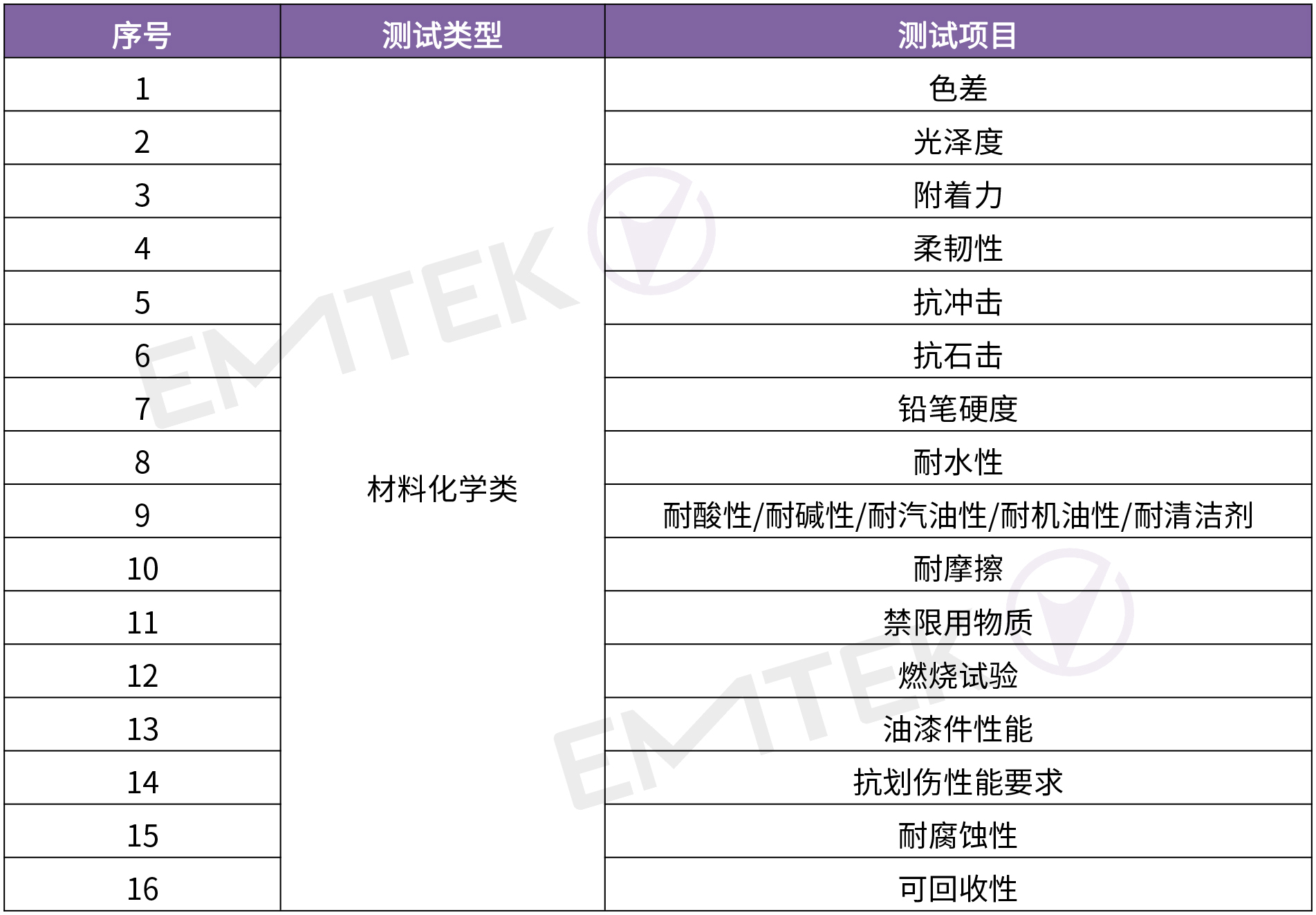 4. 材料化學(xué)試驗:考核后視鏡及其噴漆件材料化學(xué)性能,比如耐酸性、耐堿性、耐洗滌性、耐汽油、耐酒精、耐摩擦、耐沖擊、濕熱儲存、耐水性、耐指紋、耐機(jī)油、鉛筆硬度、有害物質(zhì)限定試驗、燃燒特性試驗等。