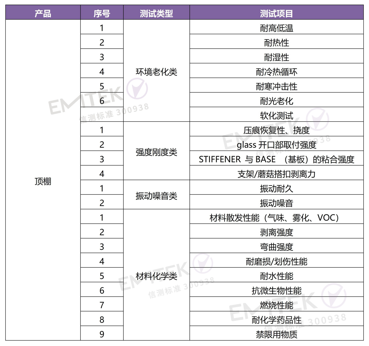能力宣稱|汽車頂棚裝飾板總成檢測