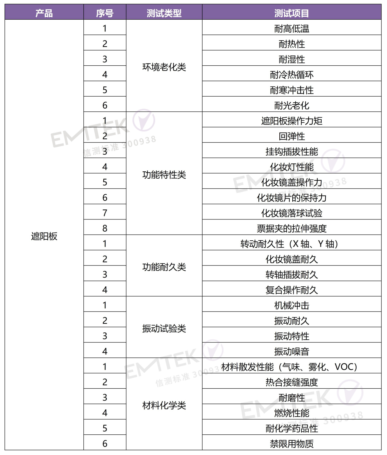 考核產(chǎn)品使用過程中承受的強(qiáng)度和剛性、操作功能特性及耐久、振動試驗(yàn),比如遮陽板操作性能、遮陽板翻轉(zhuǎn)耐久、振動耐久、振動噪音等;