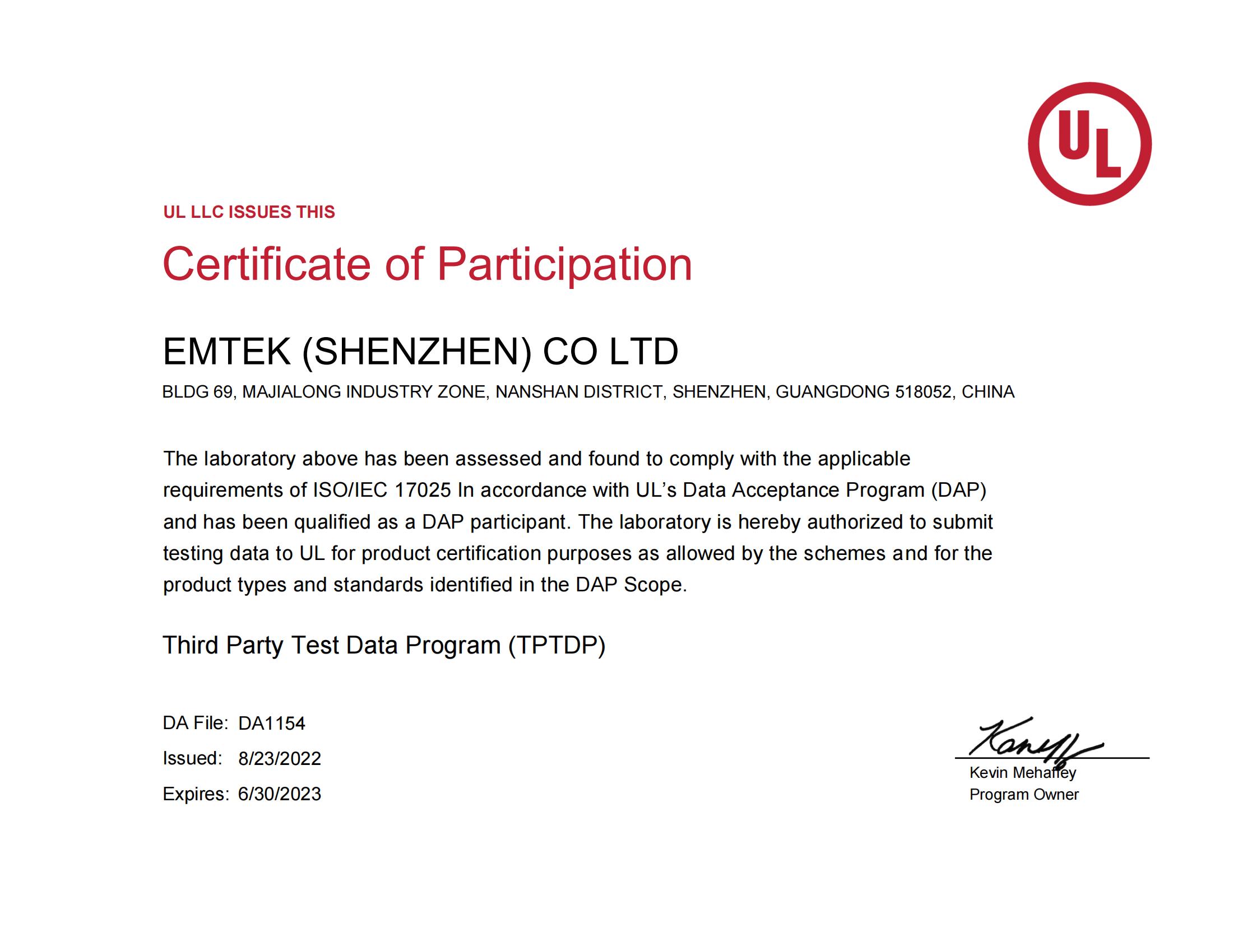 TPTDP表明在其授權(quán)范圍內(nèi)信測標準可以獨立開展測試,UL將以信測標準產(chǎn)生的測試數(shù)據(jù)為依據(jù)頒發(fā)證書。