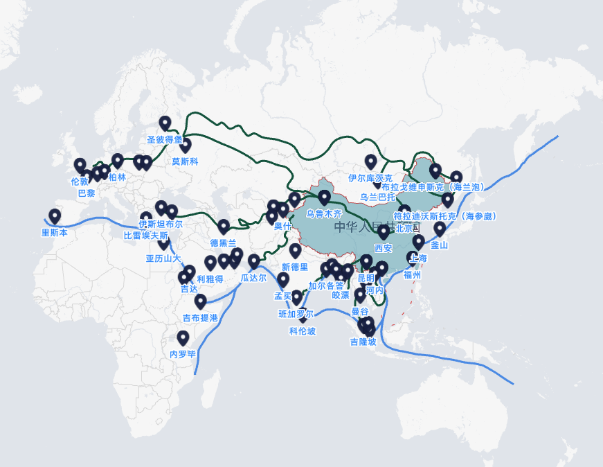 *綠色:陸上絲綢之路