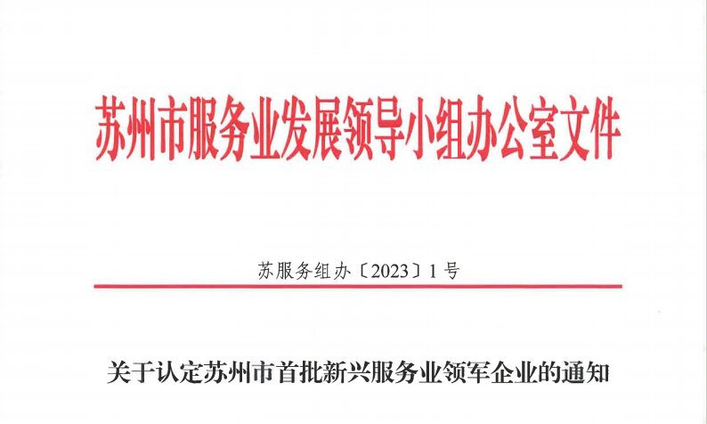 蘇州市首批新興服務(wù)業(yè)領(lǐng)軍企業(yè)