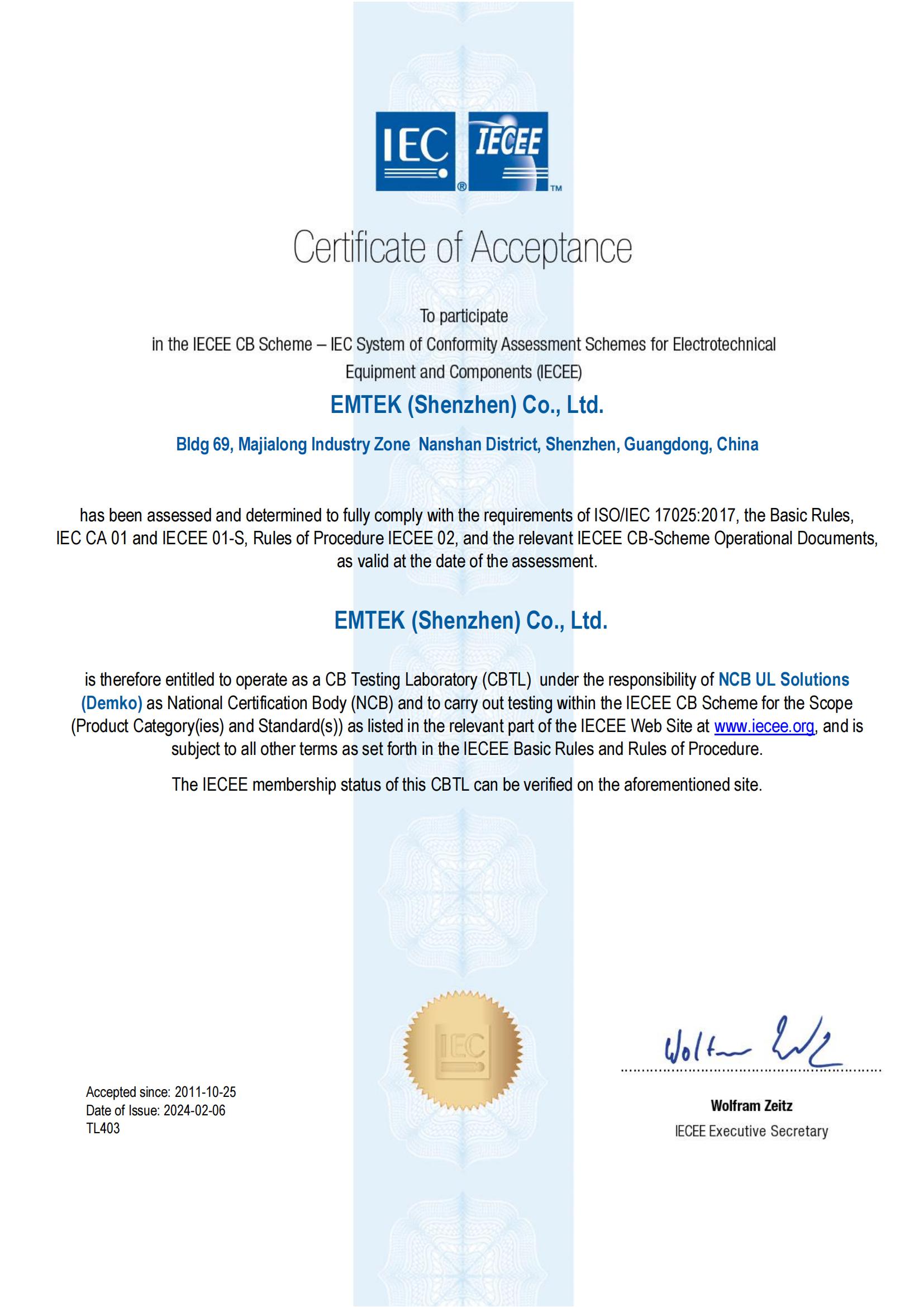 2024年2月6日,深圳信測標(biāo)準(zhǔn)技術(shù)服務(wù)股份有限公司順利通過了IECEE三年周期的復(fù)評審工作,并成功獲得IECEE醫(yī)療器械標(biāo)準(zhǔn)的CB資質(zhì)擴項。此次評審的通過,標(biāo)志著我司在安全檢測和認證領(lǐng)域的能力得到了進一步鞏固和發(fā)展,從而更好地助力客戶對國際貿(mào)易的需求和發(fā)展。