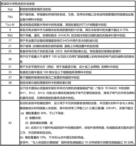 豁免條款是歐盟 RoHS 指令中的重要組成部分?;砻鈼l款分別列于附錄Ⅲ和Ⅳ中,其中附錄Ⅲ是針對所有電子電氣設(shè)備應(yīng)用的豁免,附錄Ⅳ則是專門針對醫(yī)療和監(jiān)控設(shè)備應(yīng)用的豁免。