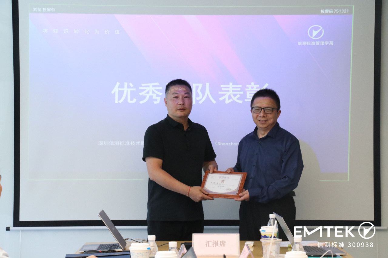 結(jié)業(yè)儀式當(dāng)天,項(xiàng)目迎來(lái)了高潮——小組匯報(bào)。各小組通過(guò)連線匯報(bào)的方式展示了他們?cè)谂嘤?xùn)期間的學(xué)習(xí)成果和實(shí)踐經(jīng)驗(yàn),經(jīng)過(guò)激烈的角逐,評(píng)選出了優(yōu)秀團(tuán)隊(duì)和優(yōu)秀學(xué)員。這些榮譽(yù)不僅是對(duì)他們個(gè)人和團(tuán)隊(duì)努力的認(rèn)可,也是對(duì)他們項(xiàng)目管理能力提升的肯定。信測(cè)標(biāo)準(zhǔn)董事長(zhǎng)呂杰中先生為優(yōu)秀代表頒發(fā)了榮譽(yù)證書(shū)。