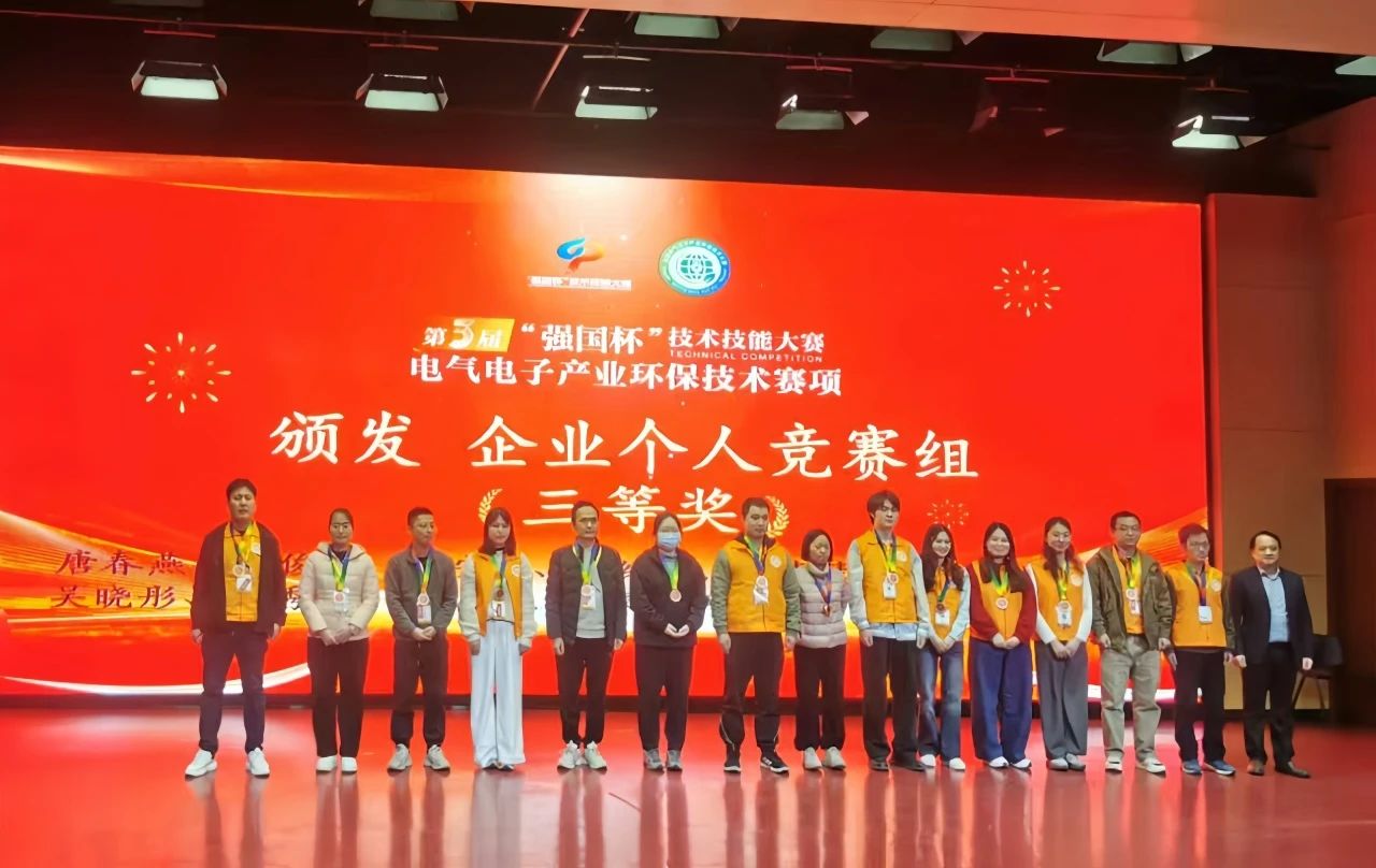 2025年1月11日,備受矚目的第三屆“強(qiáng)國杯”技術(shù)技能大賽電氣電子產(chǎn)業(yè)環(huán)保技術(shù)賽項(xiàng)總決賽圓滿落幕。廣州信測標(biāo)準(zhǔn)技術(shù)服務(wù)有限公司參賽選手歷經(jīng)激烈角逐、一路過關(guān)斬將,憑借扎實(shí)的專業(yè)知識、豐富的實(shí)踐經(jīng)驗(yàn)以及堅韌不拔的頑強(qiáng)毅力,最終榮獲三等獎的好成績,充分展現(xiàn)出專業(yè)技能,彰顯出拼搏奮進(jìn)、勇于創(chuàng)新的競技精神。