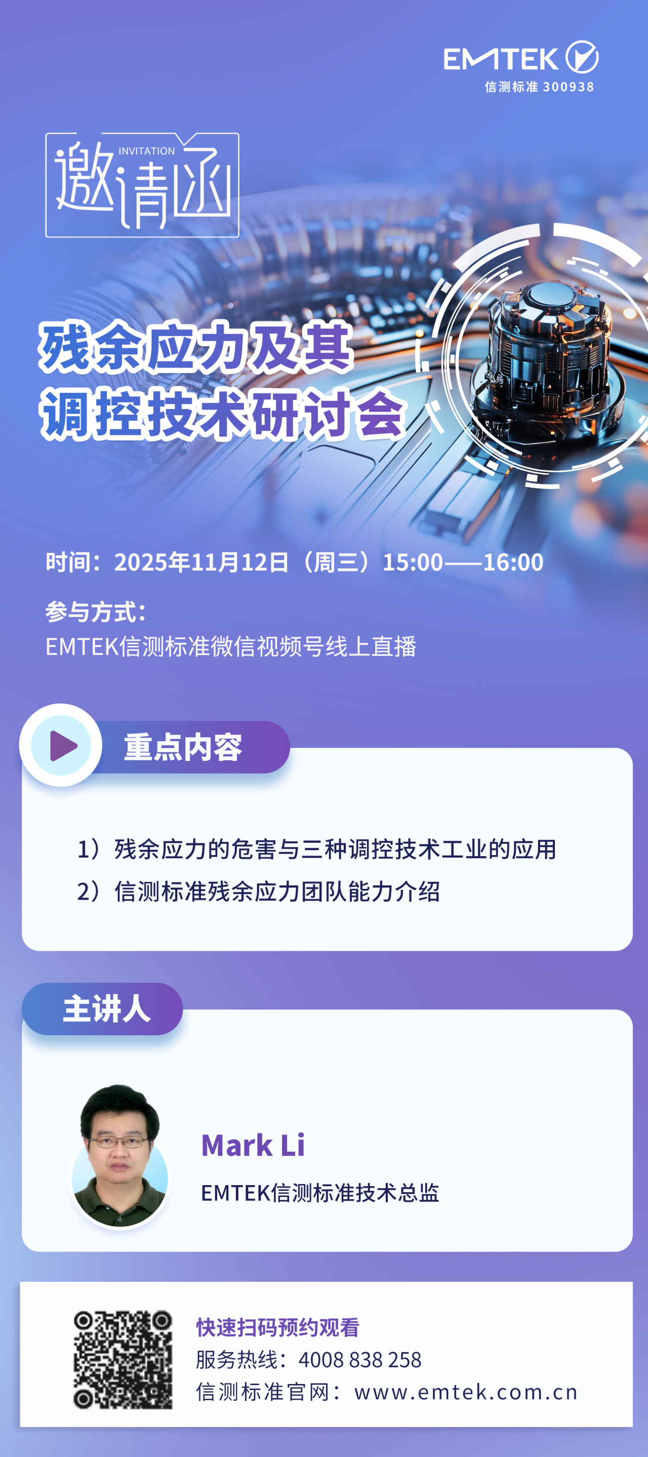 直播邀約|11月12日15:00信測(cè)標(biāo)準(zhǔn)殘余應(yīng)力以其調(diào)控技術(shù)研討會(huì)