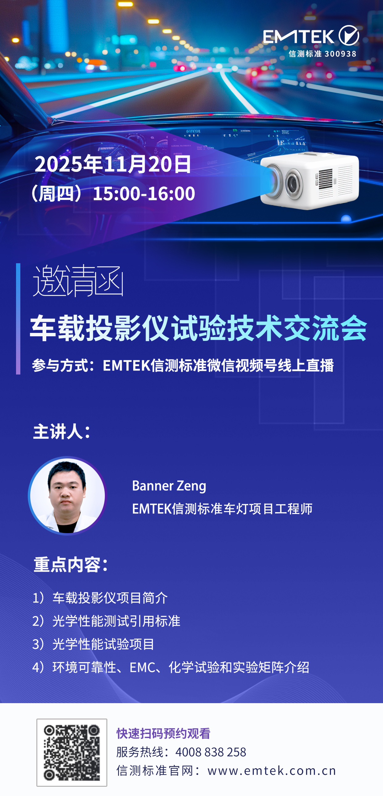 直播邀約|邀您參與11月20日15:00車載投影儀試驗(yàn)技術(shù)交流會