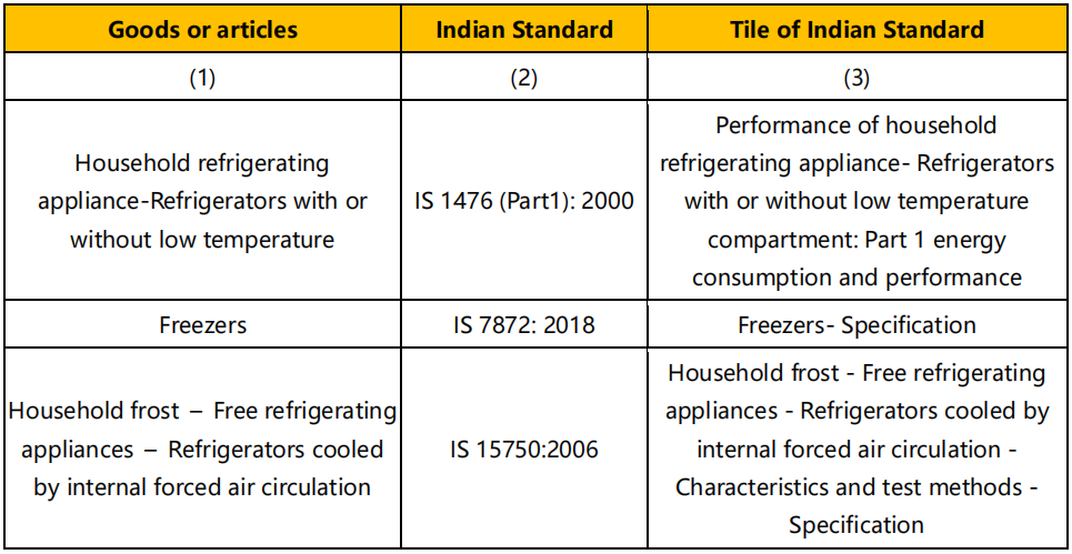 2022 年 12 月 14 日,印度標(biāo)準(zhǔn)局(BIS)發(fā)布公告,制冷設(shè)備強(qiáng)制安規(guī) ISI 認(rèn)證的實(shí)施時間再次推遲實(shí)施,下列產(chǎn)品的強(qiáng)制日期推遲到 2024 年 1 月 1 日。
