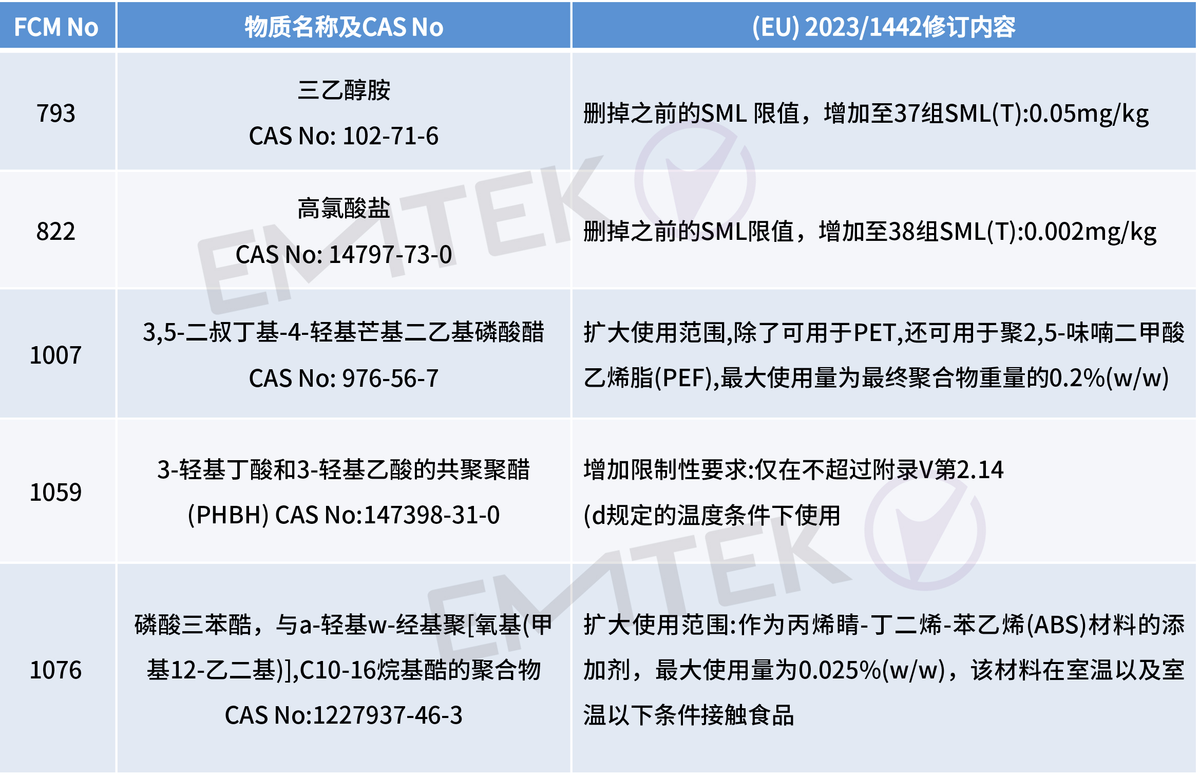 2023年7月12日,歐盟官方公報發(fā)布塑料食品接觸材料法規(guī)(EU) No 10/2011的最新修訂法規(guī) (EU) 2023/1442。新法規(guī)將于2023年8月1日生效,新法規(guī)針對附件I中部分授權(quán)物質(zhì)進行刪減,修訂及新增。