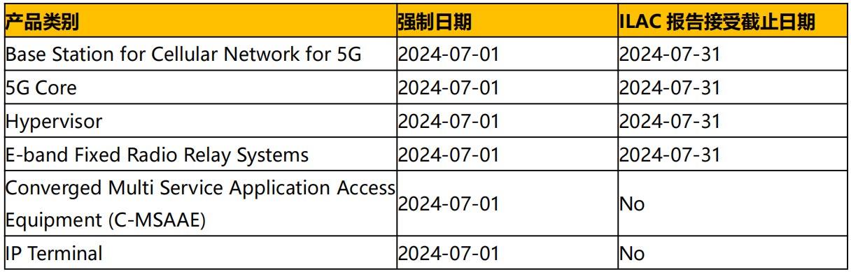 2. 自 2024 年 7 月 1 日起,蜂窩終端設(shè)備(非移動(dòng)電話)必須支持 4G,否則無(wú)法申請(qǐng)型式認(rèn)證。
