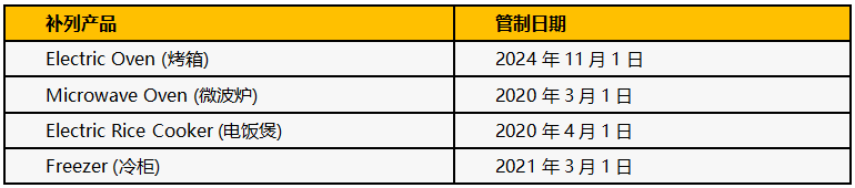 - 電冰箱:將中長期能效標(biāo)準(zhǔn)的實(shí)施日期調(diào)整為2027年1月1日和2030年1月1日。