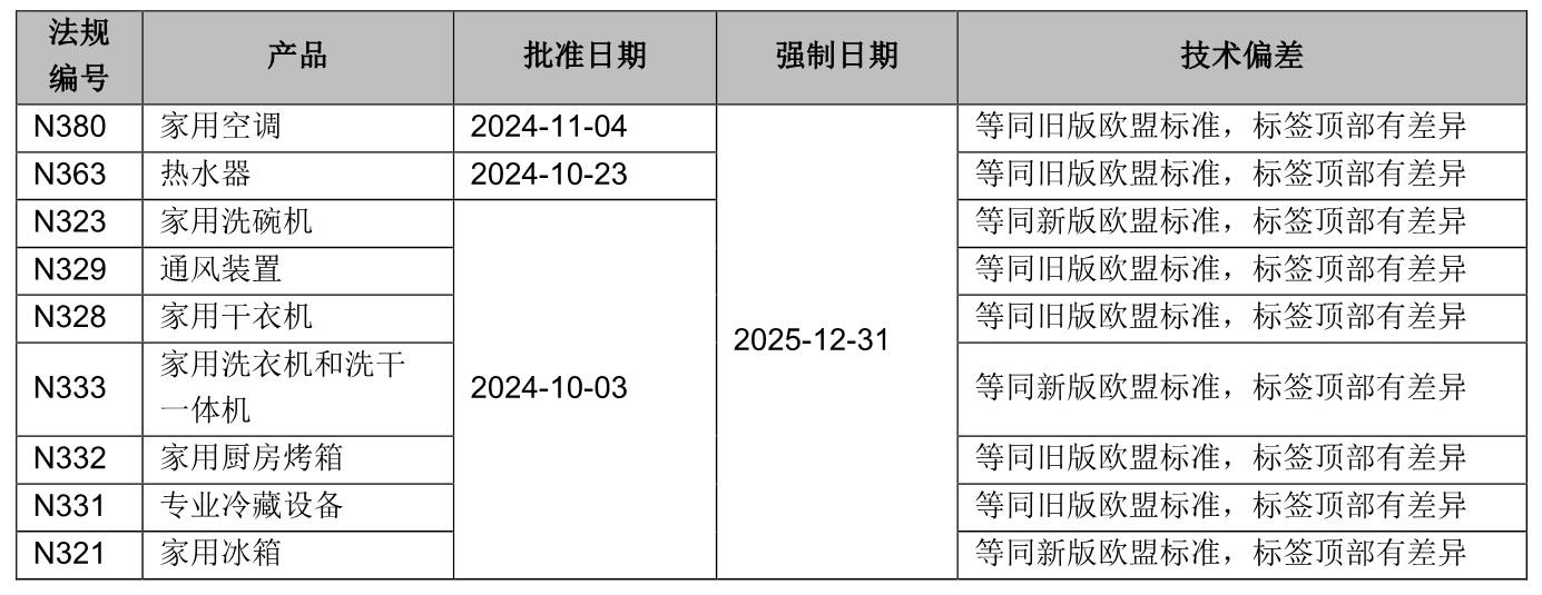 2024 年 11 月,韓國能源署 KEA 發(fā)布最新韓國 MEPS 能效等級標簽認證制度, 涉及空氣凈化器、直型LED 燈(外置驅(qū)動)、洗碗機、計算機等產(chǎn)品的新增的能效標簽認證要求。