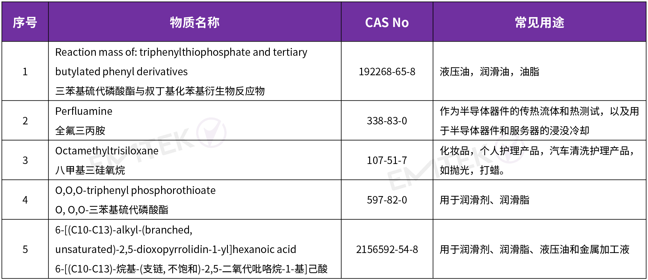 2025年1月21日,歐洲化學(xué)品管理局(ECHA)正式將下面5項物質(zhì)納入SVHC物質(zhì)清單。至此,SVHC物質(zhì)清單由原來的242項增加至247項