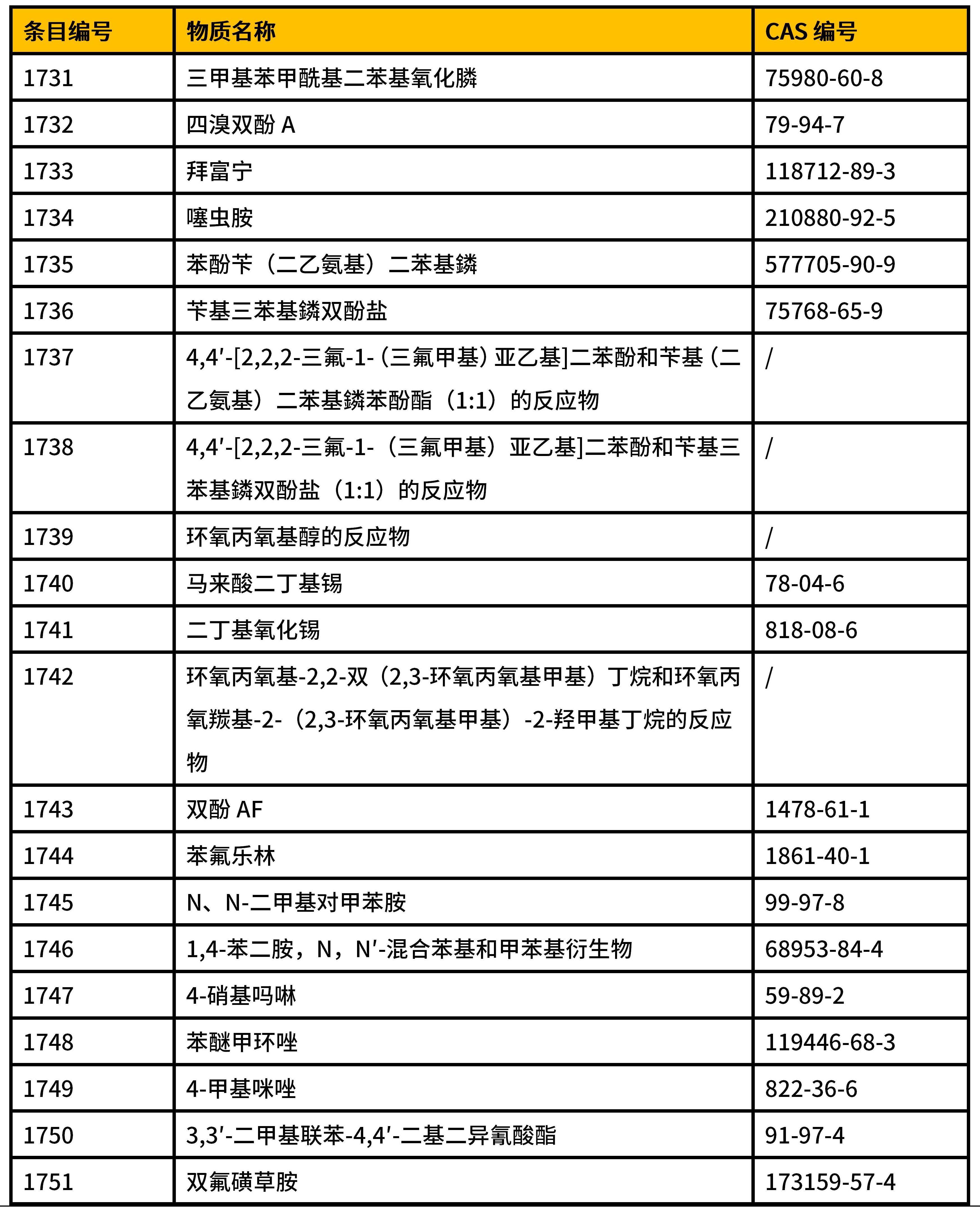 2025年6月27日,歐洲化學品管理局(ECHA)對被提議加入高度關(guān)注物質(zhì)(SVHC)清單的1項物質(zhì)開展公眾咨詢,關(guān)于這項物質(zhì)的信息如下表所示。公眾咨詢截止至2025年8月11日。