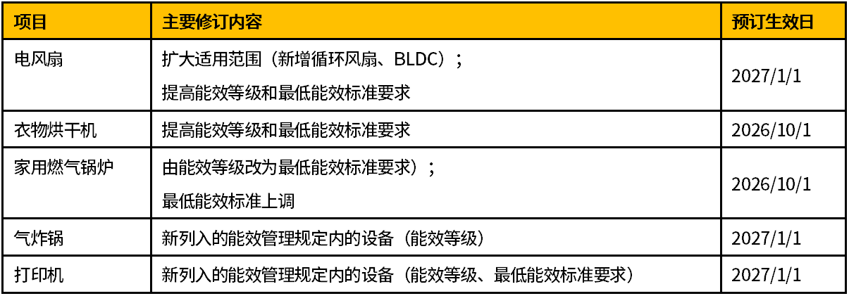需要能效認(rèn)證CoC的產(chǎn)品: