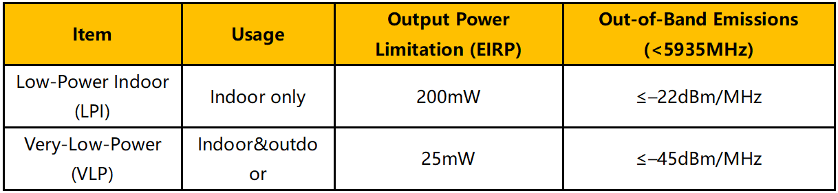 1. 根據(jù)該決議,現(xiàn)5945–6425 MHz頻段已經(jīng)正式開(kāi)放,附帶以下使用條件: