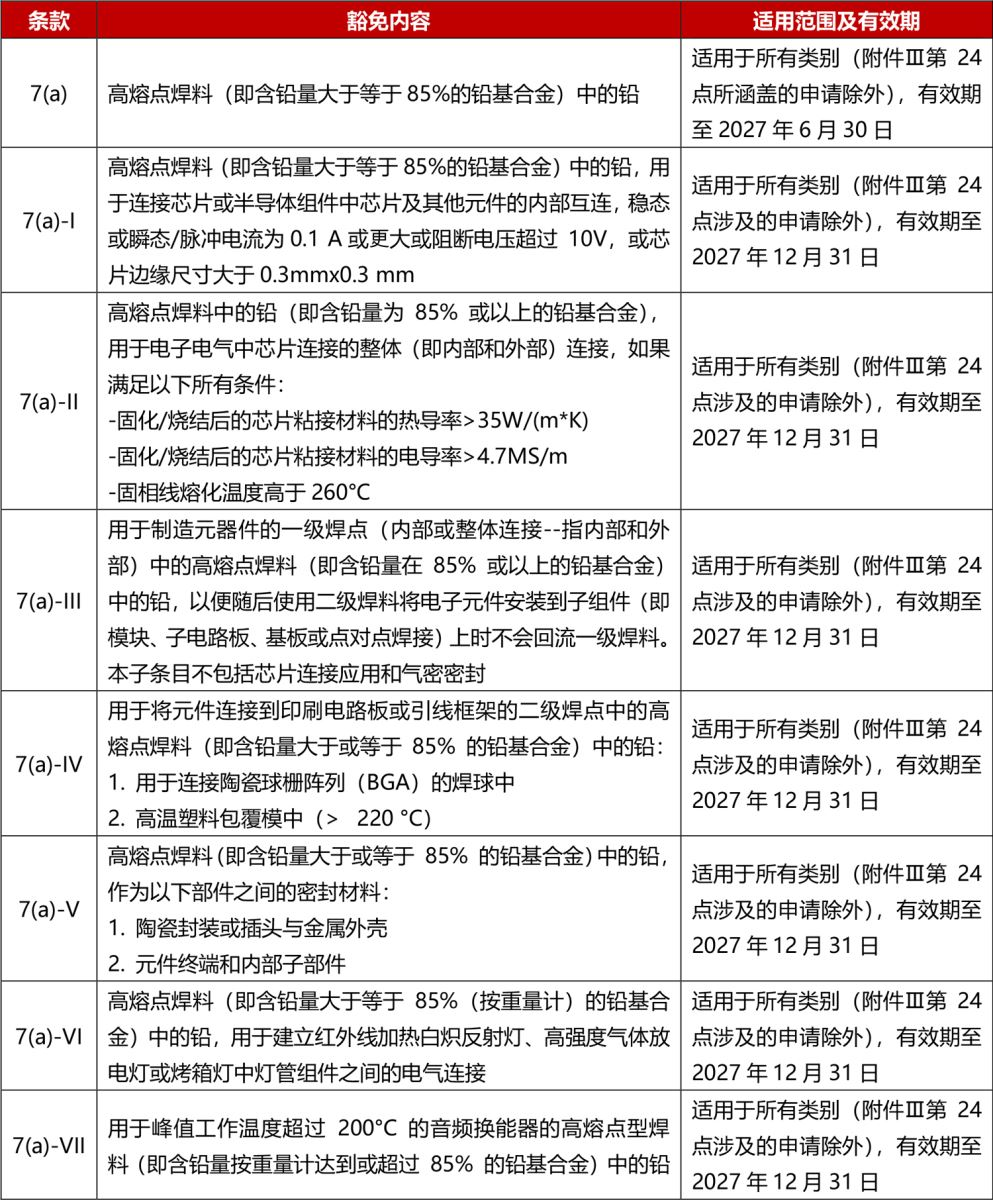 關(guān)于高熔點(diǎn)焊料,RoHS指令附錄III的7(a)豁免條款擬替換為以下內(nèi)容: